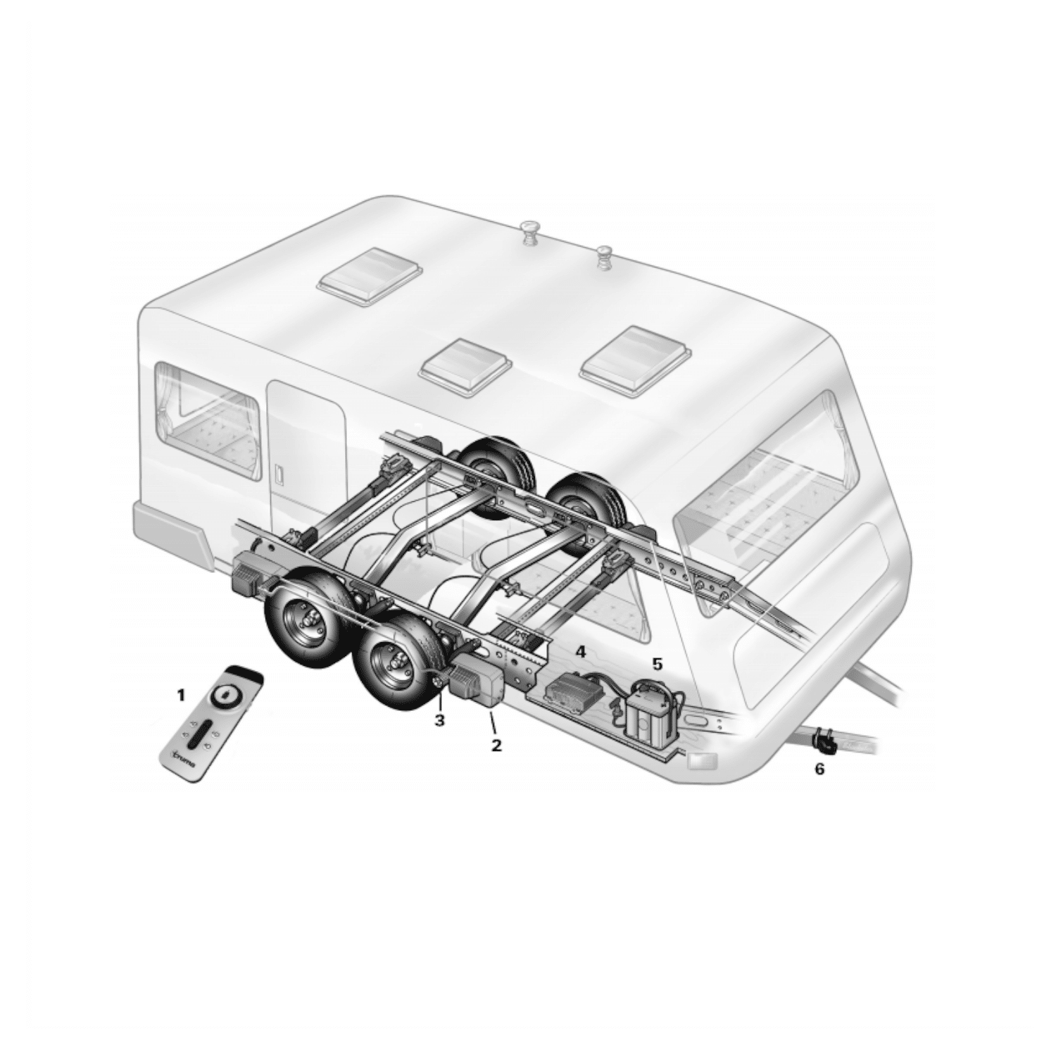3100 kilograma kadar çift dingilli karavanlar için manevra sistemi.